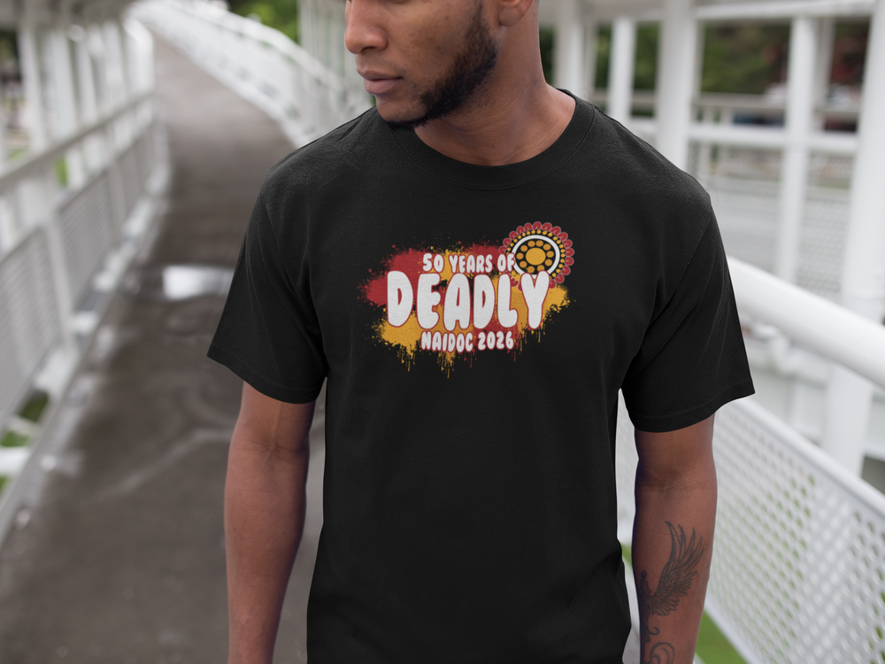This tee is more than something you wear — it’s something you stand in. Created in honour of NAIDOC Week 2026 and the theme 50 Years of Deadly, it represents pride, resilience, creativity and the unbroken strength of Aboriginal and Torres Strait Islander peoples. Each piece is a reminder that culture is not frozen in the past — it is living, evolving, and carried forward by every generation.